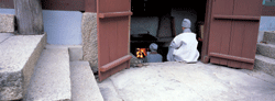 ¹ý´ç¿¡ µé¾î ÀýÀ» ¿Ã¸°´Ù. ÁöÀ庸»ì, ¼®°¡¸ð´ÏºÎó´Ô, °üÀ½º¸»ì´ÔÀÌ ¸ð¼ÅÁ® ÀÖ´Â ½Ç³»´Â ¾Æ´ãÇÏ°í µûµíÇÑ ´À³¦À» ÁØ´Ù. º®¿¡ ºÙÀº ¡®¹é¿î, û»ê, »ïÇÔ¡¯À̶ó´Â ±ÛÀÌ ´«¿¡ µé¾î¿Â´Ù. ¡®»ïÇÔ¡¯À̶ó°í ¾º¿©Áø º®¿¡´Â º®ÀåÀÌ ¸¶·ÃµÇ¾î ÀÖ°í, À̰÷¿£ °¡Áö·±ÇÏ°Ô Á¤µ·µÈ ¹ß¿ìµéÀÌ ¿©·¯ ÃþÀ¸·Î ½×¿© ÀÖ´Ù. Á¶±×¸¸ 1ÀÎ ½ÄŹ ¿ªÇÒÀ» ÇÏ´Â ¡®¹ß´Ü¡¯À§·Î Çϳª·Î Æ÷°³¾îÁø ³× °³ÀÇ ¡®¹ß¿ì¡¯°¡ ¾ñ¾îÁö°í, ´Ù½Ã ±× À§¿¡ ¡®¼öÀú Áý¡¯À» ¿Ã¸®°í, ÀÌ ¸ðµç °ÍÀ» ¡®¹ß¶û¡¯À¸·Î Â¥¸Å¾î ³õ¾Ò´Ù. ¸ÅµìÀÇ ¸ð¾çÀÌ ³ªºñÀÇ ³¯°³Ã³·³ ¾É¾Æ ÀÖ´Ù. ±×¸®°í ÀÌ À§¿¡ ´Ù½Ã Èò»ö ¡®¹ß°Ç¡¯À» ÁöºØ ¸ð¾çÀ¸·Î µ¤¾î ³õ¾Ò´Ù. º®Àå ¾È¿¡ ³õ¿©Áø ¹ß¿ìµéÀÇ ¸ð½ÀÀ» º¸°í ÀÖÀ¸´Ï, °¢°¢ ÇÑ Ã¤ ÇÑ Ã¤ÀÇ ÁýµéÀÌ ¸ð¿© ÀÖ´Â ´À³¦À» ÁØ´Ù.
