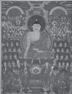 ¹Ú¹°°ü¿¡¼ ¼ÒÀåÇϰí ÀÖ´Â ¿µ»êȸ»óµµ´Â 1729³â(¿µÁ¶5³â)¿¡ Á¶¼ºµÈ °ÍÀ¸·Î ¼®°¡¸ð´Ï ºÎó´ÔÀÌ ¹ýȰæÀ» ¼³(àã)ÇÑ ¿µÃà»ê¿¡¼ÀÇ ¹ýȸ Àå¸éÀ» µµÇØ ÇÏ¿´´Âµ¥ Áß¾ÓÀÇ ¼®°¡¸ð´ÏºÒÀ» Áß½ÉÀ¸·Î »óºÎ¿¡ 100êȰ¡ ³Ñ´Â ûùÝÖÀ» »ó¼·Î¿î ±¸¸§ À§¿Í Úâê ¼Ó¿¡ ÇϴܺÎÅÍ »ó´Ü±îÁö »çõ¿Õ. 26ºÐÀÇ º¸»ì 50ºÐÀÇ ³ªÇÑ´Ô°ú ÆÈºÎ ½ÅÀå´Ô 144ºÐÀÇ ºÐ½ÅºÒ°ú 12ºÐÀÇ Å¸¹æºÒµî 240¿©ºÐÀÇ ºÒ, º¸»ì´ÔÀÌ È¸é °¡µæÇÑ Á¶¼± ÈıâÀÇ ºÒÈÀÌ´Ù.