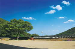 ¹ý´ç°ú ¶³¾îÁø ¾ð´öÀ§¿¡ Á¤¸é 5Ä, Ãø¸é 2ÄÀÎ ¿î¼ö³³ÀÚÀÇ ¼öÇàóÀÎ ¼±¹æ°ú ¿ä»çä°¡ ¿Ã¶ó ¾É¾Æ ÀÖ´Ù. ÆÈ°ø»ê ±íÀº ÀÚ¶ô¿¡ ±³Çаú Âü¼±¿¡¸¸ ¸ôµÎÇß´ø ¼±°´ÀÇ ¼öÇàó·Î ¹ýµîÀÌ À̾îÁø ¼±¿øÀÌ´Ù. ¼±¿øÀÇ Åä´ãÀ» ÀÌÁßÀ¸·Î µÎ²®°Ô ½×¾Æ Á¶¿ëÇÏ°í Æí¾ÈÇÑ °ø°£¿¡¼ 10¸íÀÇ ¼±°´ÀÌ 5°³¿ù¾¿ ¸éº®Âü¼±¿¡ ¸ôµÎÇϰí ÀÖ´Ù.