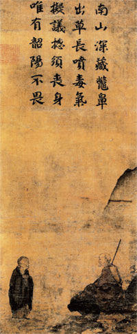 ±×¸²Àº Áö³ È£¿¡ ½Ç·È´ø ¸¶¿ø(Ø©êÀ, 13¼¼±â)ÀÇ <û·®¹ý¾È¼±»ç»ó>°ú ´ëÓ߸¦ ÀÌ·ç´Â ±×¸²À¸·Î ¿î¹®¹®¾ð ¼±»çÀÇ ¸ð½ÀÀÌ´Ù. È¸é ¿À¸¥ ÂÊ ³ª¹« ¾Æ·¡ ²¿À岿ÀåÇÏ°Ô ¾ÉÀº ä·Î ÁöÆÎÀ̸¦ µé°í ÀÖ´Â ºÐÀÌ ¿î¹®¼±»çÀÌ´Ù. °ú¿¬ ±× °¡¸£Ä§°ú ¼º°ÝÀÌ ¡®³ô°í ÇèÁØÇÏ¸ç ¹°»ìÀÌ ºü¸¦ °Í¡¯°°Àº ºÐÀ§±â°¡ ´ÙºÐÇÏ´Ù. ¸¶¿øÀÌ ±×¸° ¼±Á¾¿À°¡ °í½Â Áß¿¡ µ¿»ê¾ç°³, û·®¹ý¾È, ¿î¹®¹®¾ð ¼¼ ¼±»ç¿¡ ´ëÇÑ ¸ð½À¸¸ ±×¸²À¸·Î ³²¾Æ ÀüÇØÁö°í Àִµ¥, ¿©±â¿¡´Â °¢ Á¾ÆÄÀÇ Àü½Â°ü°è¿Í °ü·ÃÀÌ ÀÖÁö ¾Ê³ª ÇÏ´Â Àǰߵµ ÀÖ´Ù.