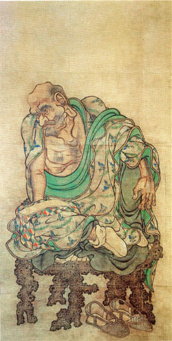 ¸î¸î ±â·Ï¿¡ ÀÇÇÏ¸é ´ç³ª¶ó ¶§ ÀÌ¹Ì ³ªÇÑÀÇ ¸ð½ÀÀ» Á¶¼ºÇÑ °ÍÀ¸·Î ÀüÇØÁö°í ÀÖÁö¸¸ Á¤È®ÇÑ ÀÛǰÀÇ ¿¹´Â ÀüÇØÁöÁö ¾Ê°í, ȲÈÞº¹üÜýÌÜÖÀÇ ¡¶ÀÍÁÖ¸íÈ·ÏìÌñ¶Ù£ûþÖâ¡·(1006)¿¡´Â ´ç³ª¶ó ¸»±â¿¡ Ȱµ¿Çß´ø ³ªÇѵµ·Î À¯¸íÇÑ È°¡µéÀÌ ¿°ÅµÇ¾î ÀÖ´Ù. ±× Áß¿¡¼µµ ³ªÇѽžÓÀÇ À¯Çà¿¡ Å« °øÇåÀ» ÇÑ È°¡ÀÌÀÚ ½º´ÔÀº ¼±¿ùàÉêÅ´ë»ç °üÈÞ(λýÌ, 832~912)ÀÌ´Ù. °üÈÞ°¡ ±×¸° ½ÊÀ° ³ªÇѵµ´Â ƯÈ÷ ¿µÇèÇÏ¿© Å©°Ô À¯ÇàÇÏ¿´°í, ÀÌ ±×¸²ÀÇ ¸ð»çº»ÀÌ ÀÌÈÄ ¼Ûáä´ë°¡ µÇ¾î Àü±¹ÀûÀ¸·Î ÆÛÁ®³ª°¬´Ù°í ÀüÇÑ´Ù. ¼±¿ù´ë»ç °üÈÞ´Â ²Þ¿¡¼ º» ³ªÇÑÀ» ±×·È´Ù°í Çϴµ¥, ¡°³ôÀº ´«½ç°ú Å« ´«(¹æ¹Ì´ë¸ñ,ÛÂÚ¶ÓÞÙÍ), ¼¿ªÀûÀÎ ¿ë¸ðÀÇ ÀεµÀÎ(È£¸ð¹ü»óû×ÙÉÛïßÓ)¡±À¸·Î Ç¥ÇöµÇ¾î ±×¶§±îÁö ¿À¸®¹«ÁßÀÌ´ø ³ªÇÑÀÇ Ç³¸ð°¡ ÀÌÈÄ ±ò²ûÇÏ°Ô Á¤¸®µÇ¾î ÀüÇØÁ³´Ù. ÀϺ» ÄÚ´ÙÀÌÁö¿¡´Â °üÈÞ ½º´ÔÀÌ ±×·È´Ù°í ÀüÇØÁö´Â ½ÊÀ°³ªÇÑ»óÀÌ ¼ÒÀåµÇ¾î Àִµ¥, °üÈÞ ½º´ÔÀÌ È°µ¿ÇÏ´ø ´ç¸» ¿À´ëÀÇ ±×¸²Àº ¾Æ´Ï°í ³²¼ÛÀÇ ±×¸²À¸·Î º¸°í ÀÖ´Ù. ÇÑ ´«¿¡µµ ¡®¹æ¹Ì´ë¸ñ È£¸ð¹ü»ó¡¯ÀÇ ³ªÇÑÀ» ¾Ë ¼ö ÀÖ´Â ÀÌ ÀÛǰ¸¸ º¸´õ¶óµµ °üÈÞ ½º´ÔÀÌ ±×·È´Ù´Â ½ÊÀ°³ªÇÑÀº ÀÌÈÄ ³ªÇѵµÀÇ ¸ðµ¨ÀÌ µÇ¾ú´Ù´Â °ÍÀ» ¾Ë ¼ö ÀÖ´Ù.