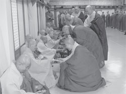 ¹æÀ彺´ÔÀ» ºñ·ÔÇÑ ¾î¸¥½º´Ô 20¿©ºÐÀÌ ¾î°£¿¡ ÁÂÁ¤ÇÏ½Ã°í ¹Ì¸® ÁغñÇÑ ••ÂÇÑ Ãµ¿øÂ¥¸® ½Å±ÇÀ» µé°í ÁغñÇϽŴÙ. ±×·¯¸é ½º´ÔµéÀº ÁÙ Áö¾î Â÷·Ê´ë·Î ¾î¸¥½º´Ôµé ¾ÕÀ¸·Î°¡ ¼¼¹îµ·À» ¹Þ´Â´Ù. ±×·¸°Ô ÇÑ ¹ÙÄû¸¦ µ¹°í³ª¸é 20¿©ÀåÀÇ ¼¼¹îµ·ÀÌ ¼Õ¿¡ ÁÖ¾îÁø´Ù. ¹ß ºü¸¥ ½º´ÔµéÀº ÇÑ ¹ÙÄû ´õ µµ´Â °æ¿ìµµ ÀÖ´Ù.