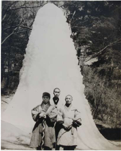 1960³â´ë ¸».ÀåÁÖ ¿ø»ê ½º´Ô°ú ÁÖÁö Áö¿ù ½º´ÔÀÌ ÇÔ²² ¿µÁö ¾Õ¿¡¼ Æ÷Á ÃëÇÏ¿´´Ù. ºÐ¼ö´ë¿¡¼ ³ª¿À´Â ¹°ÀÌ °Ü¿ïÇÑÆÄ¸¦ ¸ø ÀÌ°Ü °Å´ëÇÑ ºùº®À» ½×¾Ò´Ù. ºÐ¼ö´ë´Â »ç¶óÁ³Áö¸¸ ±×¶§³ª Áö±ÝÀ̳ª ¿µÁö´Â °¡¾ß»êÀ» ǰÀº ³ÐÀº ¸¶À½À¸·Î ÇØÀλï¸Å¸¦ µå·¯³»°í ÀÖ´Ù.