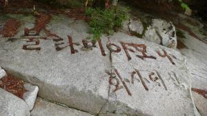 1496³â ÇØÀλç ÁÖÁö¸¦ Áö³½ ȯ°æ ½º´Ô ȸ°í·Ï¿¡´Â ¡°È¸¿îüäê£ ½º´ÔÀÇ ´çºÎ·Î ¹ü¼Ûïßö 100¿©ÀÚ³ª µÇ´Â ±Û¾¾¸¦ È«·ùµ¿ °è°î ±¤Ç³·Ú À§ÀÇ ¾Ïº®¿¡ ±Û¾¾¸¦ ºÙÀÌ°í °¢Ê¾À» Çß´Ù¡±´Â ±â·ÏÀÌ ÀÖ´Ù. ±¤Ç³·Ú À§Âʰú ÃëÀûºÀ ÀºÎºÐ ¾Ïº®¿¡´Â Áö±Ýµµ ¼ö¸¹Àº ¼®¹®ÀÌ ³²¾ÆÀÖ´Ù. ȯ°æ ½º´ÔÀÇ ±â·Ï°ú °°ÀÌ 100¿©ÀÚÀÇ ¹ü¾î´Â ¹ß°ßÇÏÁö ¸øÇßÁö¸¸ ÃëÀûºÀ ¾Ïº®¿¡´Â ÀÛÀ» ±Û¾¾·Î Á¤¹ý°èÁÖ°¡ °¢ÀÌ µÇ¾î ÀÖ´Ù.