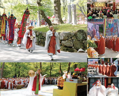 ÆÈ¸¸´ëÀå°æÀÇ ³¯ ±â³ä¹ýȸ´Â 29ÀÏ, Á¶»ó ¿µ°¡¸¦ ûÁ¤µµ·®À¸·Î ¸ð½Ã´Â ¡®½Ã·Ã(ã´Ö¦)¡¯ Çà»ç·Î ½ÃÀ۵Ǿú´Ù. Àú³á ¿¹ºÒ ÈÄ¿¡´Â ¿µ°¡¸¦ ¸ð¼Å ´ëÁ¢ÇÏ°í ¸ñ¿å½ÃŰ´Â ÀǽÄÀÎ ´ë·É°ü¿å°ú ȸ½É°î(üâãýÍØ) °ø¿¬, ö¾ß±âµµ¸¦ ºÀÇàÇß´Ù. 30ÀÏ ¿ÀÀü¿¡´Â ±¥ºÒºÀ¾È°ú ÆÈ¸¸´ëÀå°æÀ» ¼öÈ£ÇÑ ¿µ°¡¸¦ µµ·®¿¡ ¾ÈÄ¡ÇÏ´Â ¡®À§ÆÐÀ̿, Ç⡤¿¬µî¡¤²É¡¤Â÷¡¤°úÀÏ¡¤½ÒÀ» ºÎó´Ô²² °ø¾çÇÏ´Â ¡®À°¹ý°ø¾ç¡¯ÀÌ °ÅÇàµÇ¾ú´Ù. À̾îÁø ±â³ä¹ýȸ¿¡´Â ÇØÀÎÃѸ² ¹æÀå º®»ê ¿ø°¢ ´ëÁ¾»ç, ÇØÀλç ÁÖÁö ÇâÀû ½º´Ô, ¼º³«ÀÎ ¼¿ï´ë ÃÑÀå, °¼®Áø¡¤ÁÖÈ£¿µ ±¹È¸ÀÇ¿ø µî »çºÎ´ëÁß 3,000¿© ¸íÀÌ Âü¼®Çß´Ù. ±â³ä¹ýȸ¿Í õµµÀÇ½Ä ÈÄ¿¡´Â ±¹¾Ç ¾ÆÀ̵¹ ±×·ì ¹ÌÀΰú ÀüÅë ¹«¿¹´ÜÀÇ °ø¿¬µµ ÆîÃÄ Á³´Ù. ¿ÀÈÄ¿¡´Â ¸ÞÀÎ Çà»çÀÎ Á¤´ëÇàÁøÀÌ ¿·È´Ù. ºÒÀÚµéÀº ¸ðÇü ´ëÀå°æÆÇÀ» ¸Ó¸®¿¡ À̰í ÇØÀεµ¸¦ µû¶ó ÇÑ °ÉÀ½ ÇÑ °ÉÀ½ ¹ß±æÀ» ¿Å±â¸ç ±¹¿î À¶Ã¢°ú ³²ºÏÅëÀÏ ¹× ºÎó´ÔÀÇ °¡¸£Ä§ÀÌ ¿Â ¼¼»ó¿¡ ÆÛÁ®³ª°¡±â¸¦ ±â¿øÇß´Ù.