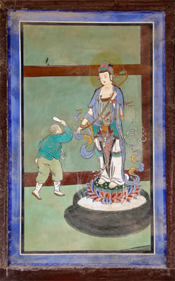 ¿À¸¥¼Õ¿¡´Â ÁöÇýÀÇ Ä®À» µé°í ¿Þ¼Õ¿¡´Â ²É À§¿¡ ÁöÇýÀÇ ±×¸²ÀÌ µé¾î Àִ û·Ãȸ¦ Áã°í ÀÖ´Ù. µ¿ÀÚ°¡ ´Ù±×ÃÄ ¹°¾ú´Ù. ¹«Âø ½º´ÔÀº ¸»¹®ÀÌ ¸·Çô µ¿ÀÚ¸¦ º¸°í ¸»ÇÏ¿´´Ù.
