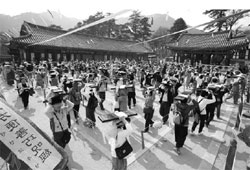 ÀÌÁ¦ °ð ÇØÀλçÀÇ 4¿ùÀÇ ¹é¹Ì Á¤´ëºÒ»ç ±â°£ÀÌ ´Ù°¡¿À°í ÀÖ´Ù. º½ÀÌ ¹«¸£ÀÍ´Â °¡¿îµ¥ ÇØÀλ翡¼´Â ¸¹Àº ºÒÀÚ´ÔµéÀÌ °æÀüÀ» ¸Ó¸®¿¡ À̰í Á¤´ëÇÏ¸é ¹ý¼º°Ô¸¦ ¿Ü¿ì¸ç ȾöÀϽ¹ý°èµµ¸¦ µ¹°í ¿Â µµ·®À» ºÎó´ÔÀÇ °¡ÇÇ·Î °¡µæ ä¿ì°Ô µÉ °ÍÀÌ´Ù. Á¤´ëºÒ»ç´Â °æÀü½Å¾ÓÀ» °¡Àå ±ØÁøÇÏ°Ô Ç¥ÇöÇÏ´Â ÀÇ·Ê ÇàÀ§¸¦ ÇàÇÏ´Â Çà»çÀÌ´Ù. Á¤´ëð¢Óã´Â ±ÛÀÚ ±×´ë·Î ¡®¸Ó¸®¿¡ ÀÌ´Â, ¶Ç´Â ¸Ó¸®¿¡ ¹Þµå´Â ÇàÀ§¡¯¸¦ °¡¸®Å²´Ù. À̰ÍÀ» ºÒ±³ÀûÀÎ ÀÇ·Ê·Î ºÎ¿¬ÇÑ´Ù¸é ¡®ºÒ»óÀ̳ª °æÀü µîÀ» ¸Ó¸®¿¡ ¹Þµå´Â ÇàÀ§¡¯·Î, °¡Àå Áö±ØÇÑ Á¸°æÀÇ ¶æÀ» Ç¥½ÃÇÏ´Â °ÍÀ̶ó°í ÇÒ ¼ö ÀÖ´Ù. ÀÌ·¯ÇÑ Á¤´ë½Å¾ÓÀÇ À¯·¡´Â °ü¼¼À½º¸»ì¿¡¼ ºñ·ÔÇÑ °ÍÀ¸·Î ¾Ë·ÁÁö°í ÀÖ´Ù. °ü¼¼À½º¸»ìÀÌ º»»çÜâÞÔÀÎ ¾Æ¹ÌŸºÒÀ» ¿¹°æÇϱâ À§ÇÏ¿© ¸Ó¸®ÀÇ º¸°üÜÄή¿¡ ºÒ»óÀ» ¸ð½Ã°í Àִµ¥ ¿©±â¼ Á¤´ë½Å¾ÓÀÌ À¯·¡µÇ¾ú´Ù´Â °ÍÀÌ´Ù. ¸Ó¸®¸¦ Áß½ÃÇÏ´Â ½À¼ÓÀº µ¿¼°í±ÝÀ» ¸··ÐÇÑ °ÍÀ̰ÚÁö¸¸, ºÒ±³¿¡¼µµ °¡Àå ±ØÁøÇÑ Á¸°æ°ú ¿¹°æÀ» Ç¥ÇöÇϱâ À§ÇØ ÀÌ·¯ÇÑ Á¤´ë½Å¾ÓÀÌ ¹ß»ýÇÑ °ÍÀ¸·Î º¸ÀδÙ. ¿©±â¼ Á¤´ëºÒ»çÀÇ ¿ª»çÀû ¹è°æ, ½Å¾ÓÀû ¹è°æ, ±×¸®°í ¹Ì¸® üÇèÇÏ´Â Á¤´ëºÒ»ç¿¡ ´ëÇØ À̾߱â ÇØº»´Ù.Á¤´ëºÒ»çÀÇ ¿ª»çÀû ¹è°æ ¾ç¹«Á¦°¡ ÁöÀº ¡´±Ý°ÆÄ¾ßÂü¹®ÐÝ˧÷îå®óÕÙþ¡µÀÇ ÀϺÎÀÌ´Ù. ±¤È«¸íÁýÎÆûðÙ¥ó¢ ±Ç 28¿¡ ½Ç·Á ÀÖ´Â ÀÌ ±Û¿¡¼ °æÆÇ Á¤´ë½Å¾Ó°ú °ü·ÃÇÑ ³»¿ëÀ» ¾î´À Á¤µµ ¿³º¼ ¼ö ÀÖ´Ù. ¡°¿øÇÏ¿É°Ç´ë ¿©·¯ ºÒº¸»ì²²¼ ¹Ý¾ßÀÇ Àο¬À¸·Î µ¿½Ã¿¡ ¸ðÀ̼ÌÀ¸´Ï, ¸¸Ç°Ø¿ù¡À» ºÒ½ÖÈ÷ ¿©±â°í ±º»ýÏØßæÀ» º¸»ìÇǼż ÀºÇý·Î¿î È帧¿¡ µé°Ô ÇÏ¿© ºÎó´ÔÀÇ ¹Ù´Ù·Î ´Ù ÇÔ²² µ¹¾Æ°¥ ¼ö ÀÖµµ·Ï ÇÏ¿© Áֽÿɰí, ±Ý°ÀÇ ¹¦ÇÑ º¸¹è¸¦ ¾ò°í ±ÝøÐÝôàÀÇ ±íÀº °æÀüÀ» ±ú´Ý°Ô ÇÏ¿© ÁֽÿɼҼ. ¸Ó¸®¿¡ ÀÌ°í ¹Þµé¾î ¸ð½Ã¸é¼ Á×À» ¶§±îÁö ¶¼Áö ¾Ê°Ú³ªÀÌ´Ù.¡± ¿©±â¼ ¾ç¹«Á¦´Â °æÀüÀ» ¸Ó¸®¿¡ ÀÌ°í ¹Þµé¾î ¸ð½Ã¸é¼ Æò»ýÅä·Ï ¶¼Áö ¾Ê°Ú´Ù°í ºÎó´Ô²² ´ÙÁüÇϰí ÀÖ´Ù. ±×¸¸Å °æÀüÀÇ °¡¸£Ä§À» Áß½ÃÇÏ¸é¼ ±×´ë·Î »ì¾Æ°¡°Ú³ë¶ó°í ´ÙÁüÇϰí ÀÖ´Â °ÍÀÌ´Ù. ¹°·Ð ÀÌ ÀڷḸ °¡Áö°í ±× ¶§ºÎÅÍ °æÆÇ Á¤´ëºÒ»ç°¡ ÇàÇØÁ³´Ù°í ´ÜÁ¤Çϱâ´Â ¾î·Æ´Ù. ±×·¯³ª ¾ç¹«Á¦ÀÇ ½Å¾Ó°ú »çȸÀÇ ¿µÇâ·ÂÀ» °í·ÁÇØ º¼ ¶§, ÀÌ °°Àº °æÀü Á¤´ë½Å¾ÓÀÌ ³Î¸® È®»êµÇ¾úÀ» °¡´É¼ºÀº ÃæºÐÇÏ´Ù. ¿ì¸®³ª¶óÀÇ °æ¿ì¿¡¼µµ °æÀü½Å¾ÓÀº ¸Å¿ì À̸¥ ½Ã±âºÎÅÍ Ã£¾Æº¼ ¼ö ÀÖ´Ù. ÀÏ¿¬ ½º´Ôµµ »ï±¹À¯»ç ¡°ÀüÈļÒÀå»ç¸®Á¶¡±¸¦ ÅëÇØ °æÀüÀÇ Àü·¡¿Í À¯Åë °úÁ¤À» ÀÚ¼¼È÷ ¼¼úÇÑ ¹Ù ÀÖ´Ù. ƯÈ÷ °í·Á ÇöÁ¾´ëÀÇ ÃÊÁ¶´ëÀå°æ ÆÇ°¢ ÀÌÈÄ °æÀü½Å¾ÓÀº ´õ¿í Á߽õǾúÀ» °¡´É¼ºÀÌ ³ô¾Æ º¸ÀÌÁö¸¸, °æÀüÀ̳ª °æÆÇÀ» ¸Ó¸®¿¡ ÀÌ´Â ÇüÅÂÀÇ Á÷Á¢ÀûÀÎ ÀÇ·Ê ÇàÀ§ »ç·Ê´Â º¸ÀÌÁö ¾Ê´Â´Ù. ¹°·Ð °í·Á½Ã´ë¿¡´Â ¸¹Àº ¼öÀÇ ±¹°¡ÀÇ ºÒ±³Çà»ç°¡ °³ÃֵǾúÀ¸¸ç, ÀÌ °¡¿îµ¥ °æÀü½Å¾Ó°ú °ü·ÃÇÑ ºÒ»çµµ ÀûÁö ¾Ê¾Ò´Ù. °í·Á»ç¿¡ ¼ö½Ã·Î µîÀåÇÏ´Â °°æË»Ìè¹ýȸ»Ó¸¸ ¾Æ´Ï¶ó °æÂùȸÌÔóÆüå, Àå°æµµ·®íúÌèÔ³íÞ, °æÇàÌèú¼, Àü°æï®Ìè µîÀº ¸ðµÎ °æÀü½Å¾Ó¿¡ ±Ù°ÅÇÑ ±¹°¡ÀÇ Çà»ç¿´À» °ÍÀÌ´Ù. ´Ù¸¸ ÇöÁ¸ÇÏ´Â ±â·ÏÀÌ ¸ðµÎ ´ÜÆíÀûÀÎ °ÍµéÀÌ¾î¼ À̵é Çà»çÀÇ ÀǽÄÀÌ ¾î¶°ÇÑ ÇüÅ·ΠÁøÇàµÇ¾ú´ÂÁö¿¡ ´ëÇØ¼´Â È®ÀÎÇÒ ±æÀÌ ¾øÀ¸³ª ´ÜÆíÀ» ¸ð¾Æ Á¤¸®Çغ»´Ù¸é ¼ºÁ¾ 10³â(991³â)¿¡ ÇѾð°øùÛåéÍñÀÌ ´ëÀå°æÀ» ¼Û³ª¶ó¿¡¼ °¡Á®¿ÀÀÚ ¿ÕÀº ´ëÀå°æÀ» ³»ÀüÀ¸·Î ¸Â¾ÆµéÀÌ°í ½º´Ôµé·Î ÇÏ¿©±Ý °³µ¶ËÒÔÁÄÉ ÇÏ¿´´Ù. Àå°æµµ·®À̶ó´Â À̸§À¸·Î ¿¸®±â ½ÃÀÛÇÑ °ÍÀº ÇöÁ¾ 20³â(1029) ¶§ºÎÅÍÀÌ´Ù. ÇöÁ¾Àº ÀÏÂïÀÌ ¼¼»óÀ» ¶°³ ºÎ¸ð¸¦ À§ÇÏ¿© ÇöÈ»çúÜûùÞѸ¦ â°ÇÇÏ°í ±× Àý¿¡ ´ëÀå°æÀ» ¸¸µé¾î ¸ð½Ã°íÀÚ ÇÏ¿´´Âµ¥, ÇöÁ¾ 20³â¿¡ ±× ¶§±îÁö ÀÌ·ç¾îÁø ´ëÀå°æÀÇ ÀϺθ¦ ¹Þµé¾î ¸ð½Ã°í °ø¾çÇÏ¿´´Ù. ±×·ÎºÎÅÍ ¾ó¸¶ ÈÄÀÎ Á¤Á¾ 7³â(1041)¿¡´Â ÀÌ Àå°æµµ·®ÀÌ ¿¬ÁßÇà»ç°¡ µÇ¾î ÇØ¸¶´Ù º½°ú °¡À»¿¡ µÎÂ÷·Ê ¼º´ëÇÏ°Ô ¿¸®¾ú´Âµ¥ ±¹¿ÕÀÌ Á÷Á¢ ±× Àå¼Ò¿¡ ³ª¾Æ°¡ ÇàÇâú¼úÅÇÏ¿´À¸¸ç, ´õ·¯´Â »ïº¸¸¦ ÂùźÇÏ´Â °æÂù½ÃÌÔóÆã̸¦ Áö¾î ºÒ±³¿¡ ±ÍÀÇÇÏ´Â ±¹¿ÕÀÇ ¶æÀ» ³»º¸À̱⵵ ÇÏ¿´°í, °ø´öÀ» ¹Ù¶ó´Â ¸¶À½¿¡¼ ½Â·ÁµéÀ» ÃÊ´ëÇÏ¿© À½½ÄÀ» ´ëÁ¢ÇÏ´Â ¹Ý½ÂÚù㬵µ ¾Æ¿ï·¯ ÇàÇØÁ³´Ù. Á¤Á¾ ÀÌÈÄ·Î Àå°æµµ·®Àº ´õ¿í ¼º´ëÈ÷ º£Ç®¾îÁ® Ãæ¼±¿Õ 3³â(1311)ºÎÅÍ´Â Çà»çÇÏ´Â ³¯À» ´Ã·Á º½ °¡